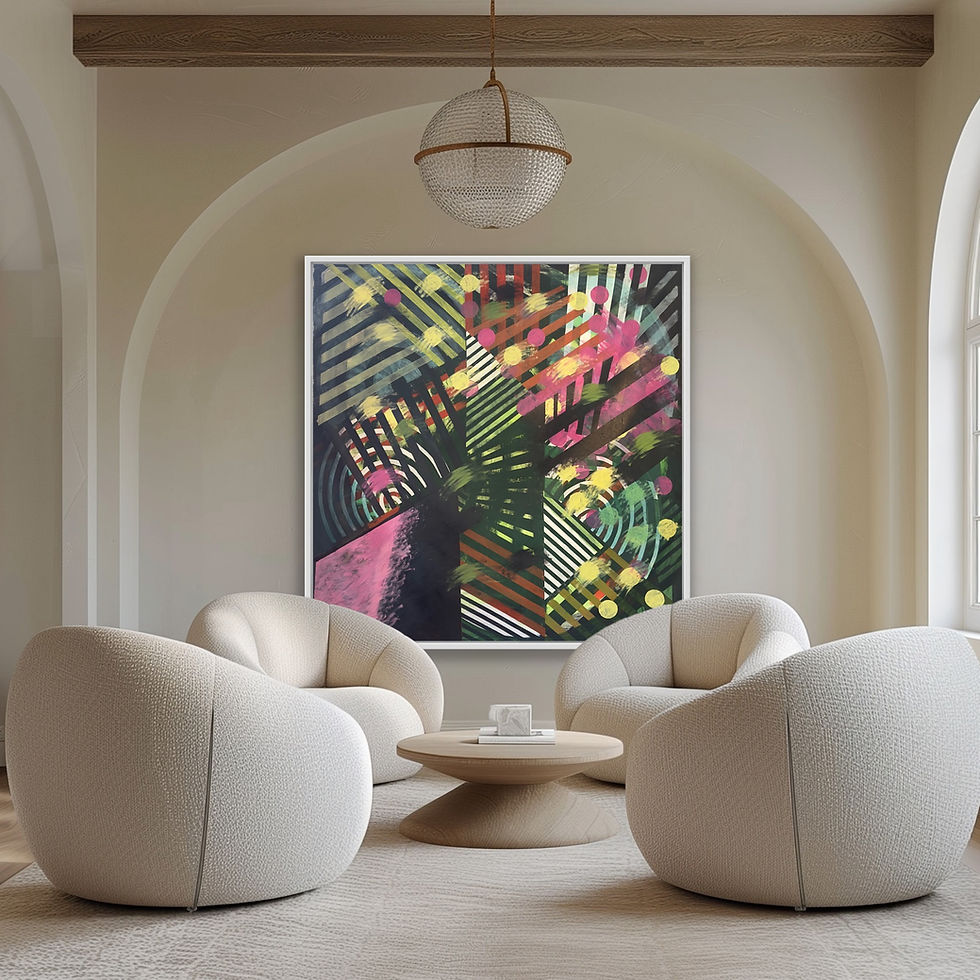 In my painting studio, I strive to transform the chaos of the world around me into something manageable and balanced. For years, I've been developing a personal visual language that reflects this journey. Now, at 53 years old and with over 30 years devoted to this process, I am attempting to express this language through my work, sharing its energy with the world.